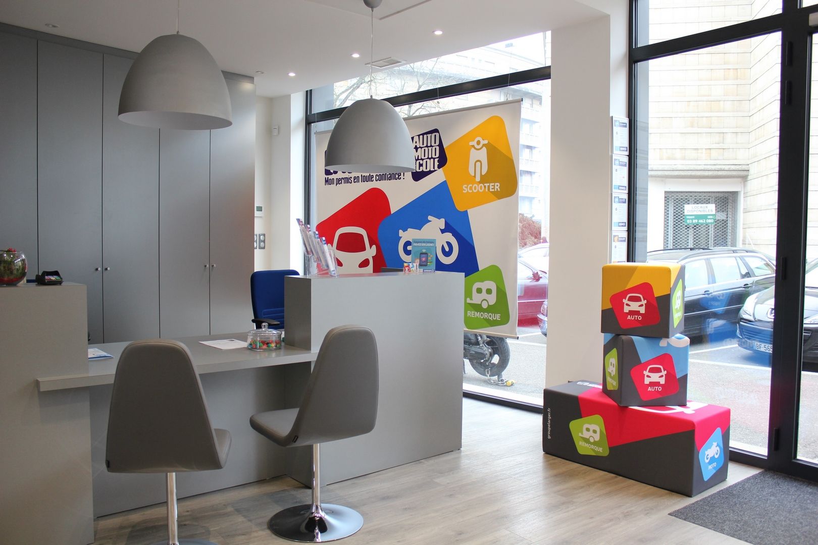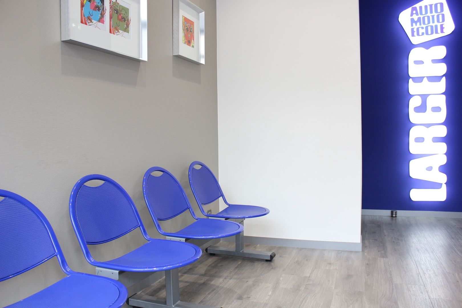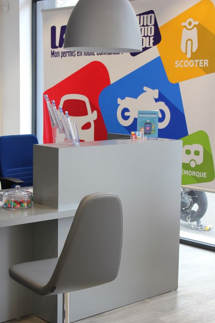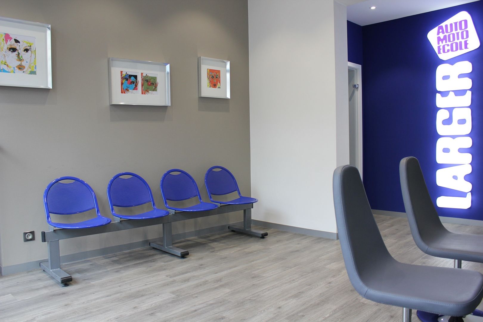 Loin du cliché de la salle obscure pour apprendre le code de la route, le Groupe Larger nous a suivi dans un concept décoratif dynamique à l’image du personnel de la société.