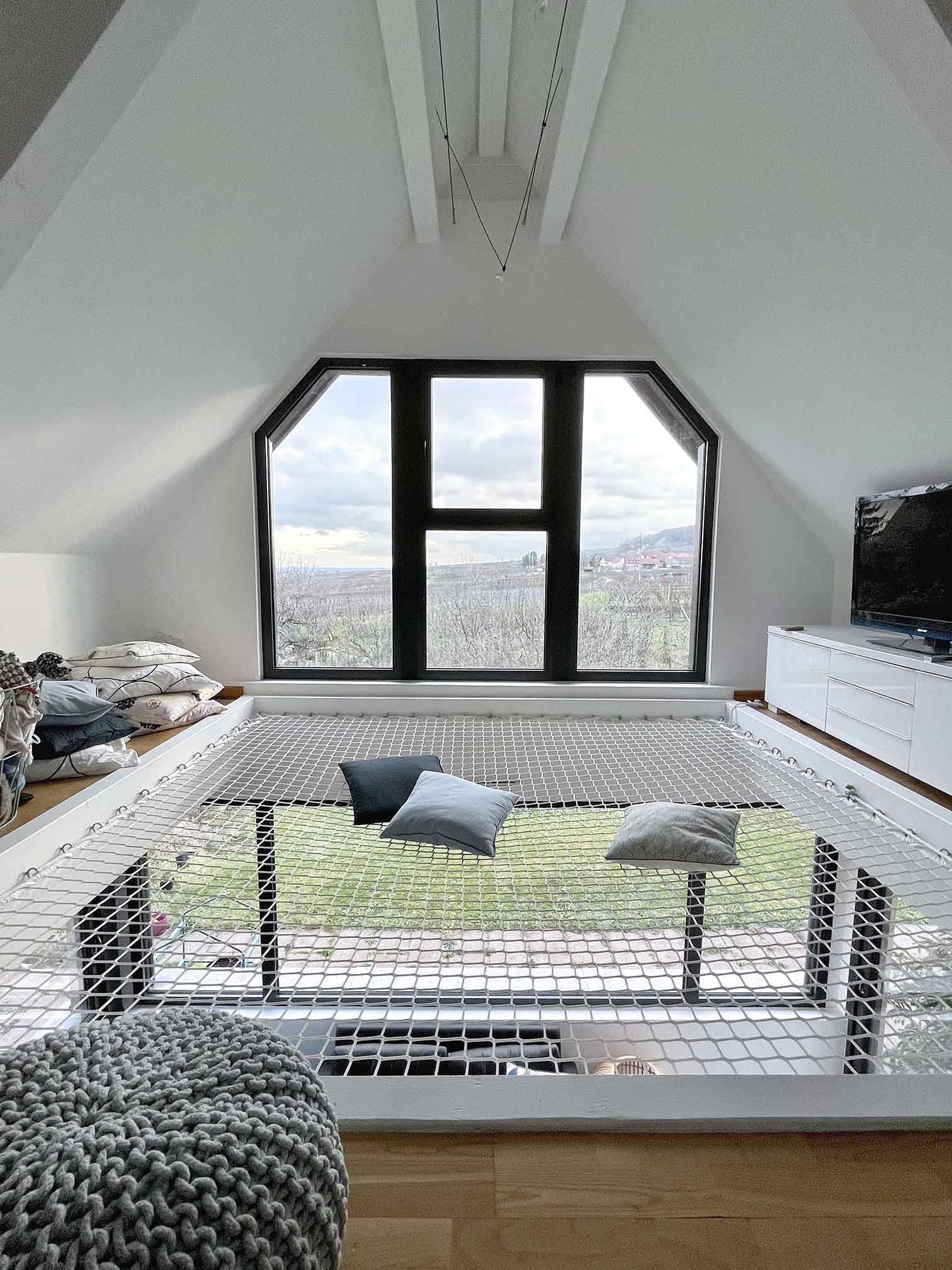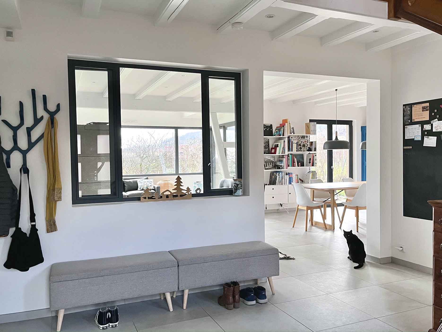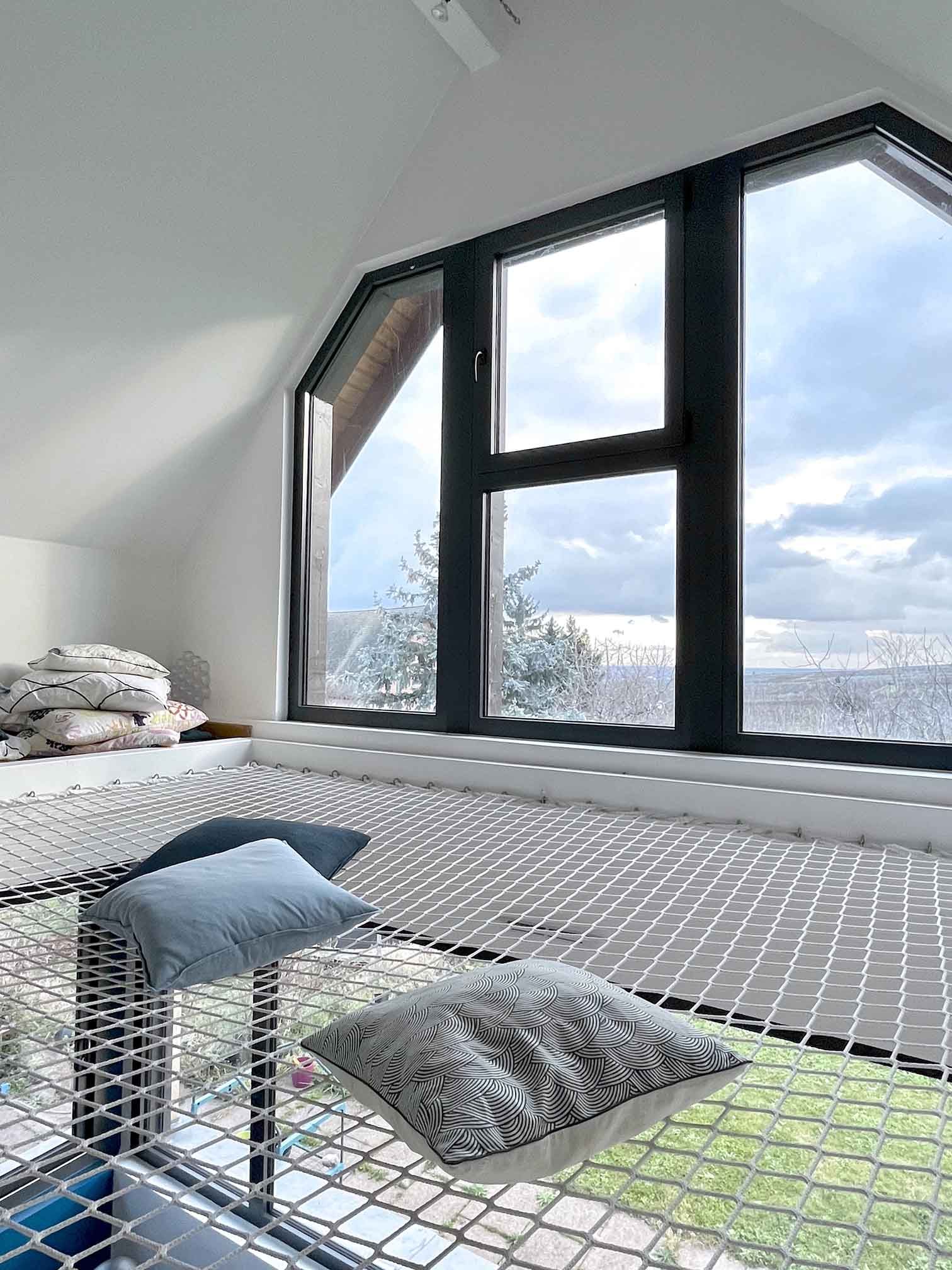 Le tout, couronné par la création d’une ouverture entre les deux niveaux d’habitation, l’ajout d’un filet de catamaran et l’agrandissement des ouvertures pour offrir à cette charmante famille, une vue imprenable sur nos superbes reliefs alsaciens.