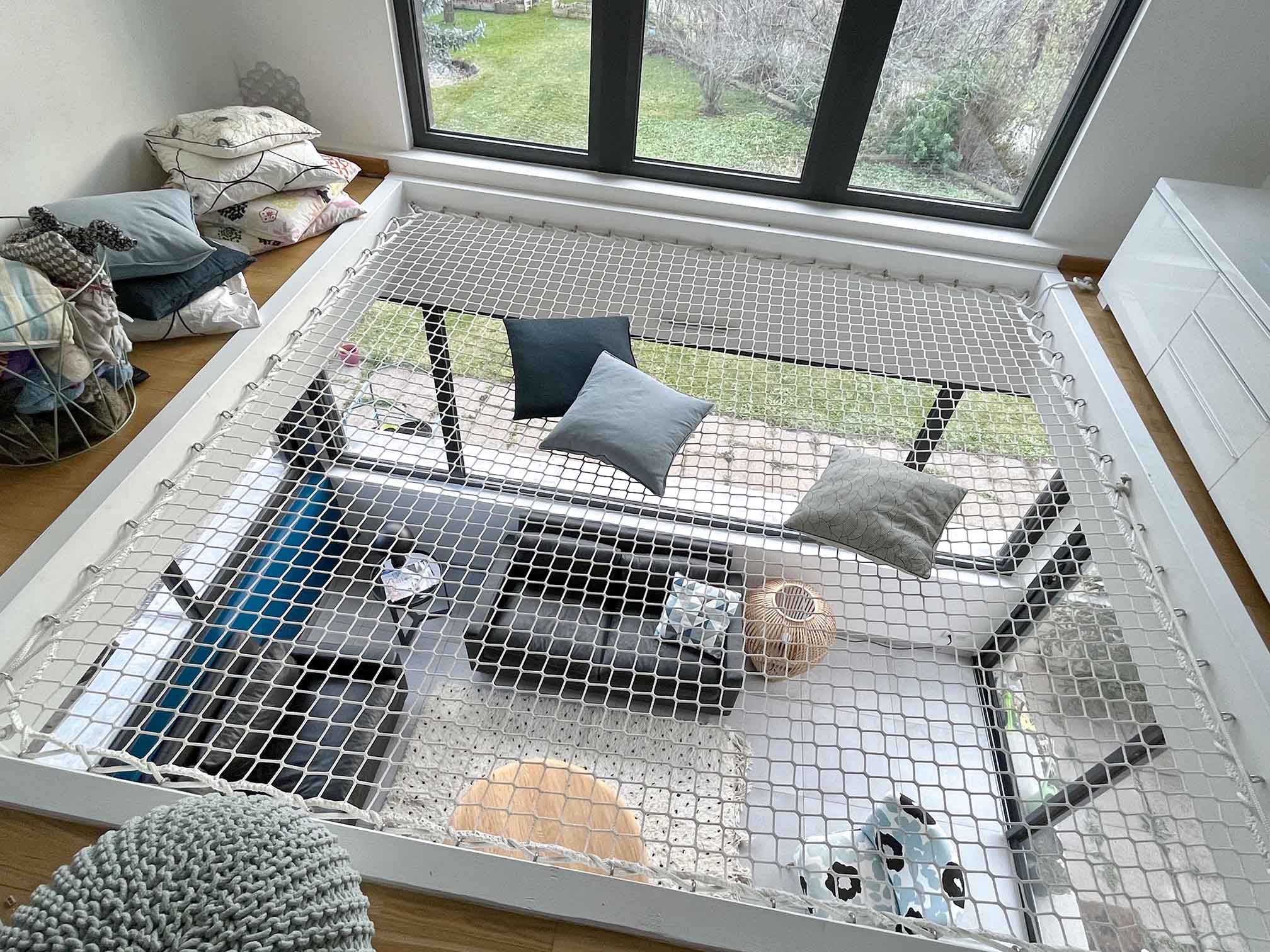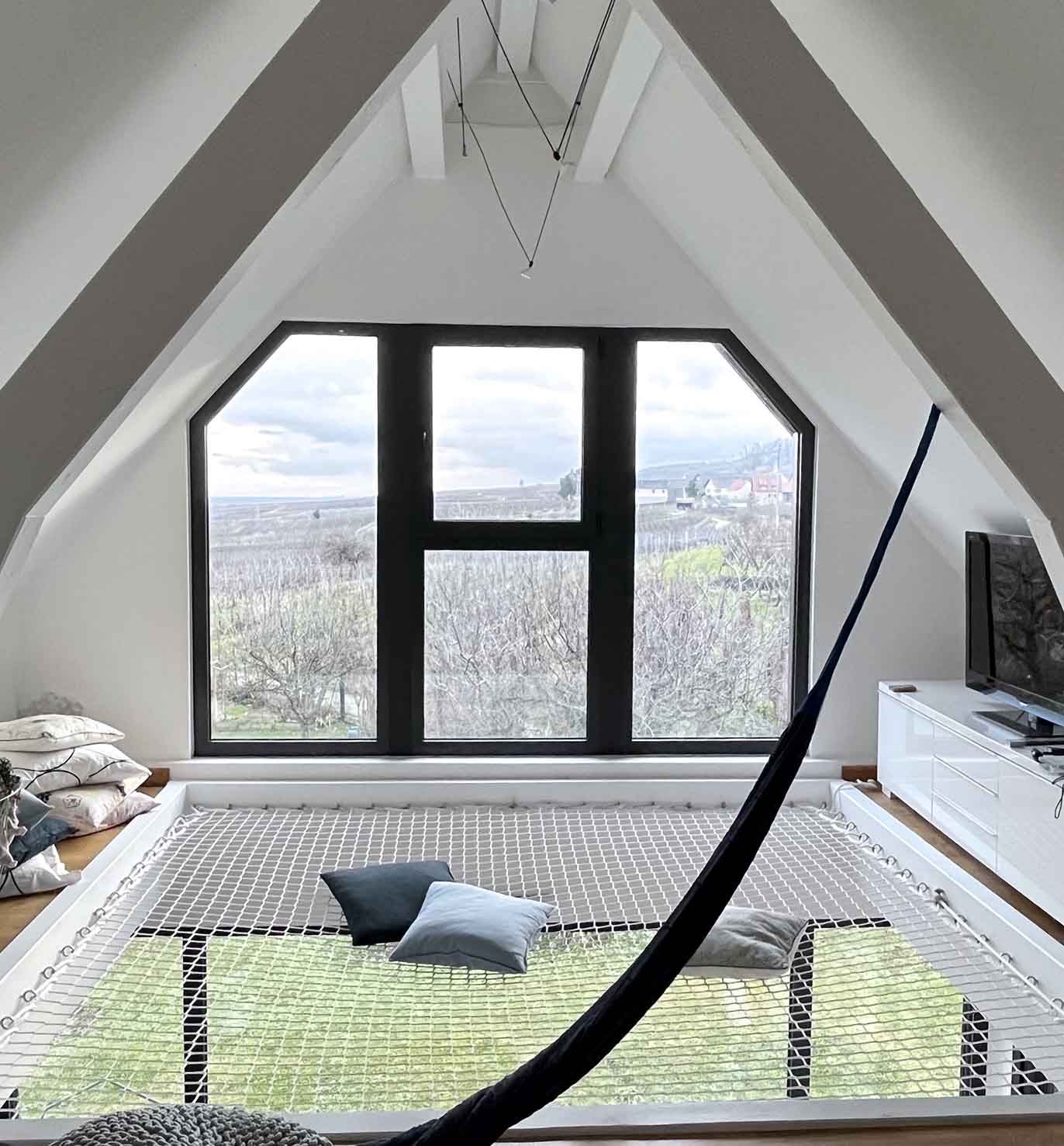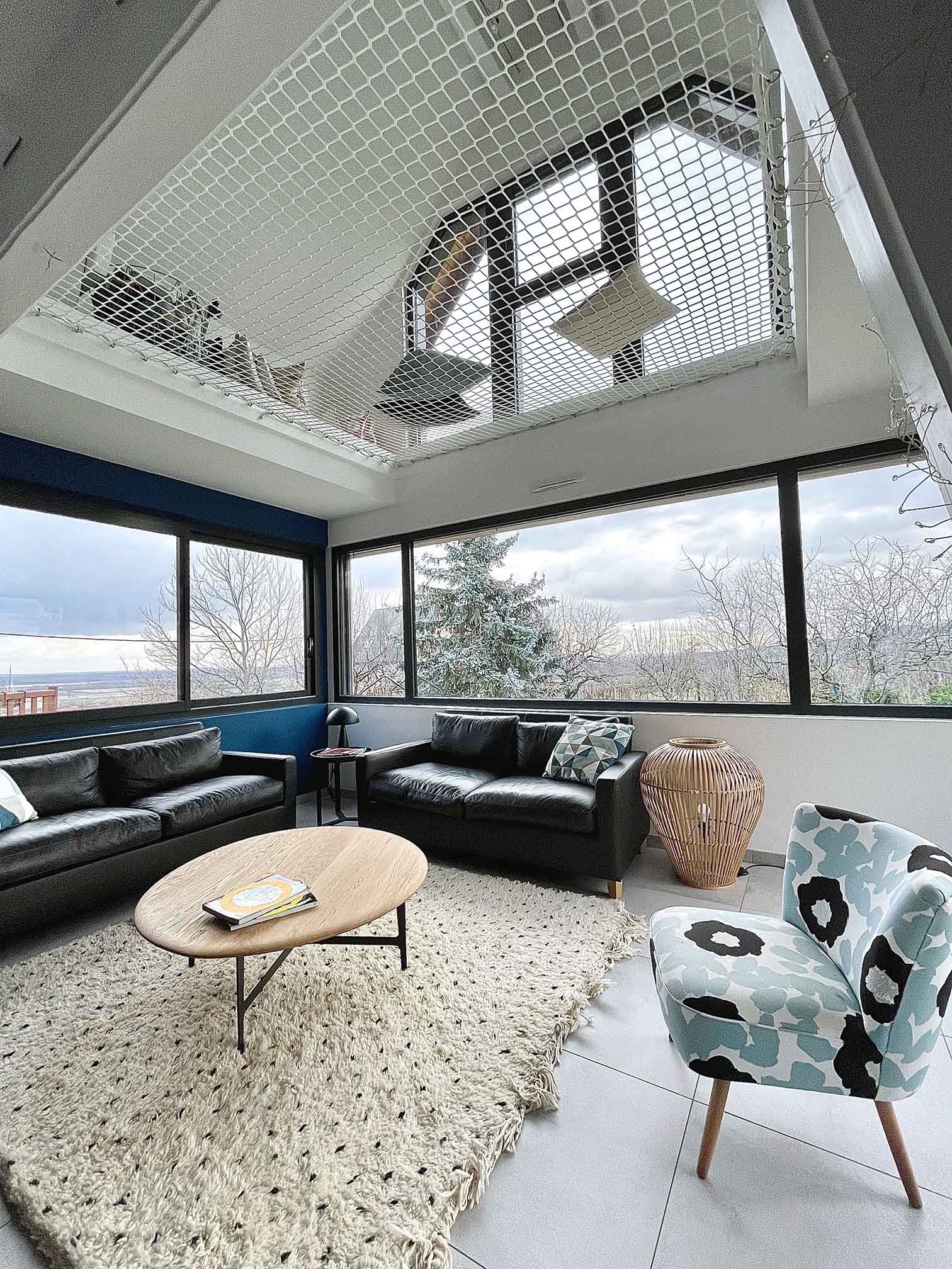Le tout, couronné par la création d’une ouverture entre les deux niveaux d’habitation, l’ajout d’un filet de catamaran et l’agrandissement des ouvertures pour offrir à cette charmante famille, une vue imprenable sur nos superbes reliefs alsaciens.